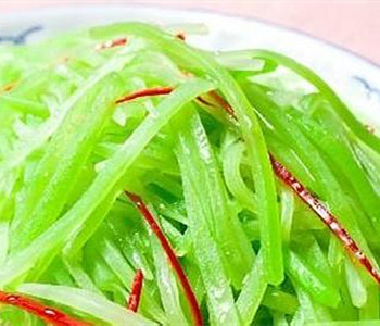 凉拌莴笋叶的特色:香辣凉爽,脆嫩可口。凉拌莴笋叶怎么做,如何做凉拌莴笋叶 莴笋取其叶洗净,用开水焯一下,沥出水分晾凉,切成丝装盘,浇上用酱油、醋、白糖、香油调成的汁,再放点辣椒油拌匀即可。
