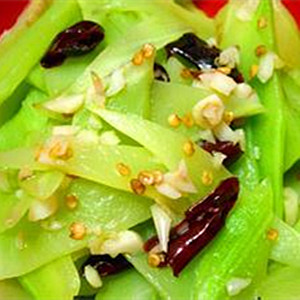 首先我们要将油烧热,然后把蒜蓉爆香,把热好的油浇在备好的汁中,然后把汁和莴笋丝拌均,最后装盘即可,这样,凉拌莴笋叶就完成了。