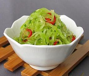 莴笋的叶子要怎么吃呢?推荐大家可以尝试凉拌着来吃。做法是将莴笋叶洗净后,用开水焯一下,沥出水分晾凉,切成丝装盘,浇上用酱油、醋、白糖、香油调成的汁搅拌均匀即可,也可以放点辣椒油拌匀。