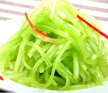 1、莴笋去掉叶子,削去外皮,洗净后切成丝(有工具的朋友也可以直接擦成丝);