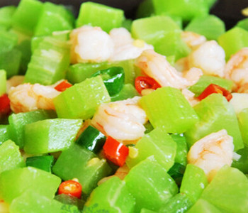 1、莴笋去叶削皮,洗净后切成1厘米左右的方块;虾仁去壳去尾,洗净后用料酒、盐、生粉腌制15分钟;辣椒切成圈装;姜、蒜切碎;