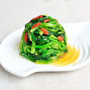 用姜汁做的菜一般都有一种特别的辛香味道。这道姜汁菠菜,菠菜清淡的味道和姜汁相融合,风味格外独特。菠菜营养丰富,还含有丰富的粗纤维,能够促进肠蠕动;而姜汁具有保护胃粘膜细胞的作用,由于姜汁性温,所以经常用于散寒温胃。