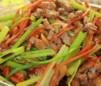 芹菜炒牛肉是最常见的芹菜做法。当鲜嫩的牛肉遇上翠绿的芹菜,两者相互融合产生了美妙的化学反应,炒制出一道肉嫩菜翠、味道香浓的佳肴。烹饪时一般选用鲜嫩的牛肉与芹菜加上绍酒等调料做成,是一道非常适合男女老少的家常菜。芹菜具有一股特殊的芳香,能安神镇定、增强食欲,牛肉补脾胃,两者一起食用,堪称黄金搭档。下面一起来学学具体的烹饪方法吧。