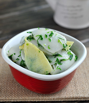 5、烹饪菱角菜时不宜加入蒜、姜、料酒来调味,以免破坏荠菜本身的清香味。