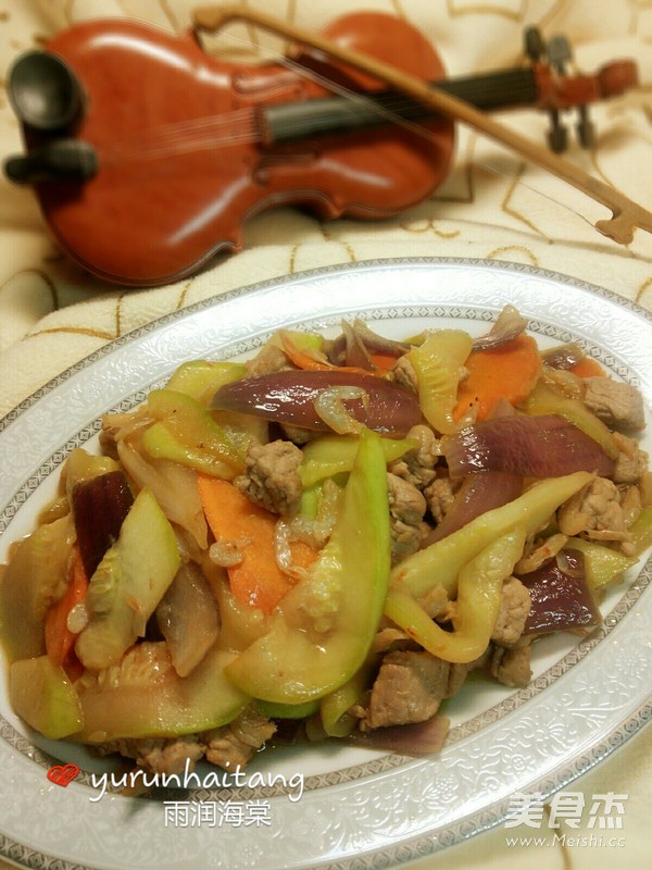 9.翻炒至西葫芦断生,再加入少许盐即可。