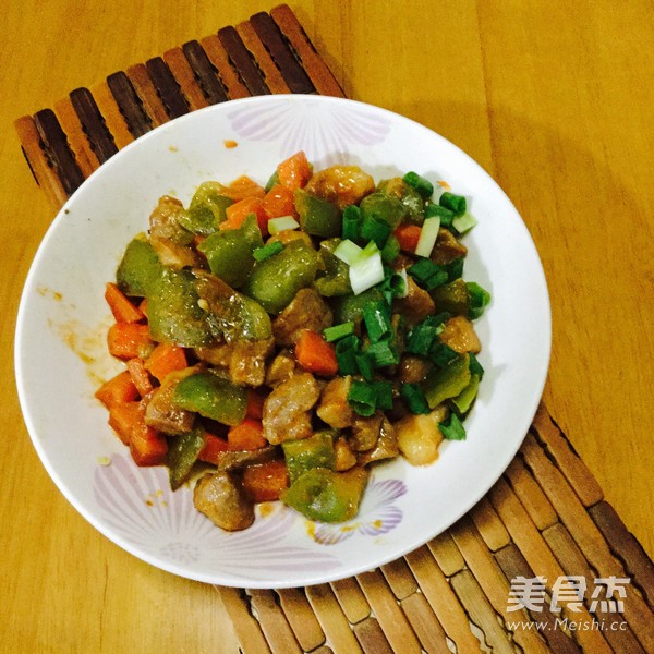 如果不喜欢吃生葱花的亲们,可以在盛起之前,把葱花放锅里同肉丁一起翻炒一下