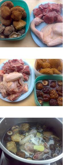 猴头菇鸡汤的材料:猴头菇,冬菇,鸡,猪骨,姜片猴头菇鸡汤的做法:1.猴头菇、冬菇需提前泡透,鸡、猪骨砍大块 2.把洗好的材料放进汤煲内,加入适量的水,大火煮沸后,转小火,煲2小时左右,把汤煲至汤色浓浓的,加入适量的盐,再煮沸一会,就可以装碗了