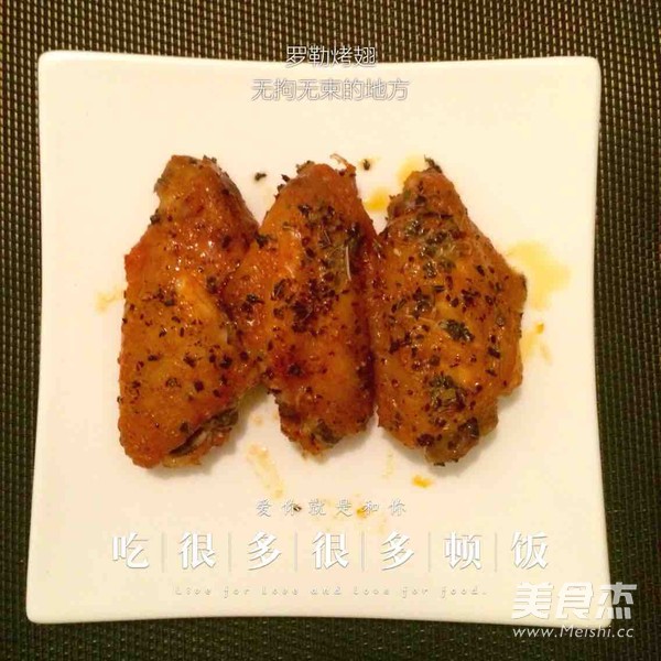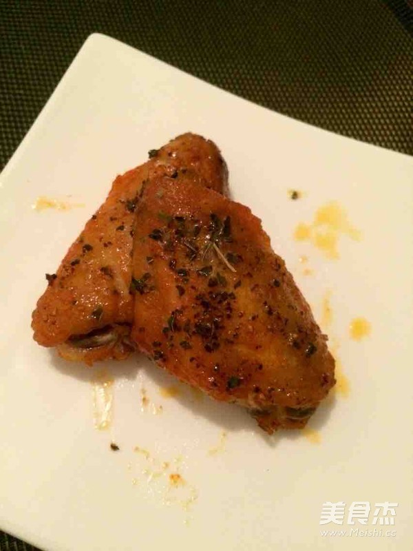 2.烤箱210度预热撒上黑胡椒,下层10分钟后拿出来再刷一遍奥尔良腌料,中层5分钟,拿出来后撒罗勒碎,继续5分钟就ok了