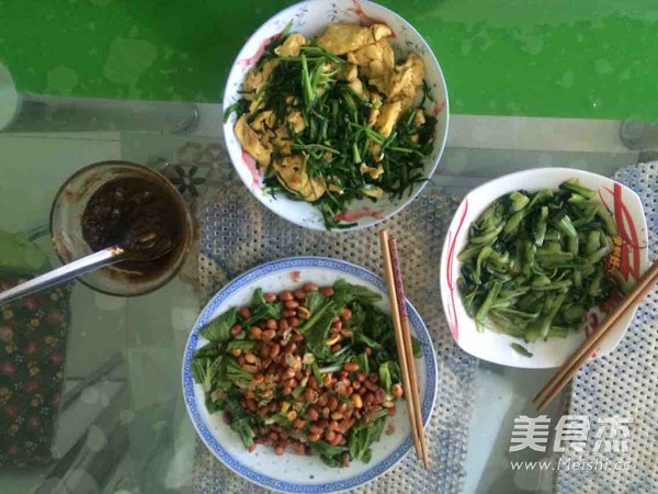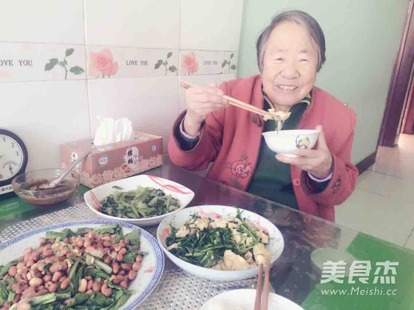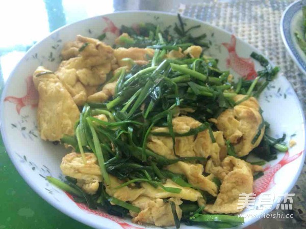 第一次下厨 忙活了一上午 给奶奶做了 三个菜 她自己还有一碗千年吃不厌的大酱 主料 韭菜200克 鸡蛋2个 辅料 食盐4克 植物油3勺 酱油2勺 韭菜炒鸡蛋的做法 1.挑好粗韭菜 切好 2.切好韭菜 拿好鸡蛋准备搅拌 3.搅拌鸡蛋 4.在锅里放两勺油 油开了 放入搅好的鸡蛋 5.把煎好的鸡蛋盛到盘子里 6.放入韭菜 小炒一分钟 7.放入鸡蛋 不要把鸡蛋搅得太碎 8.OK 成功 烹饪技巧 炒鸡蛋也就一分钟 炒韭菜要少于一分钟 恩 就这样