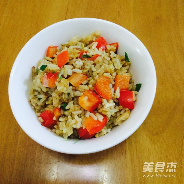 中午饭做多了,晚餐就炒饭吃吧 主料 米饭500克 鸡蛋100克 彩椒50克 香葱10克 辅料 油20克 盐8克 生抽5克 蚝油3克 彩椒炒饭的做法 1.准备好材料 2.圆椒切丁,香葱切葱花 3.起油锅 4.加入彩椒、葱花和少许盐,炒至熟,盛出 5.另起油锅,加入米饭 6.加入盐、生抽和蚝油,翻炒均匀,结块的米粉用铲稍稍压一下,打饭搅散 7.打入鸡蛋,迅速翻炒 8.加入炒熟的彩椒 9.加入葱花便可 烹饪技巧 米饭不能有结块,如果有,可以用铲稍稍压一下,搅散