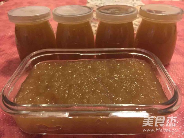 3.熬啊,熬啊…待苹果软烂后,要用勺子摁压成糊状。然后来回搅动,避免糊锅。(还是小火哦~)熬至你满意为止。关火,凉凉。