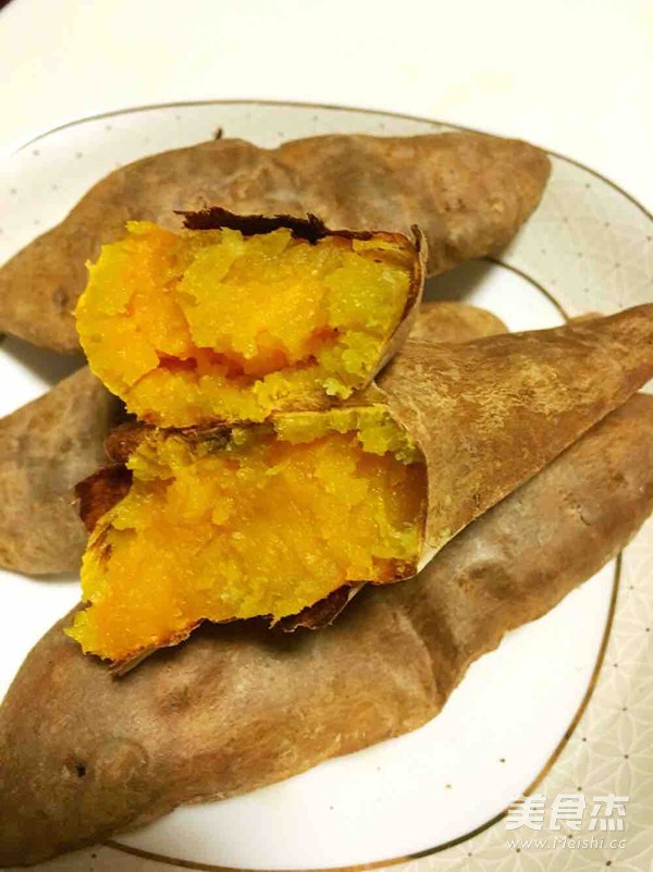 1.地瓜洗净用厨房纸巾吸干表面水份(锅内放不开,实际烤了2个)