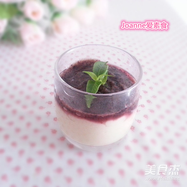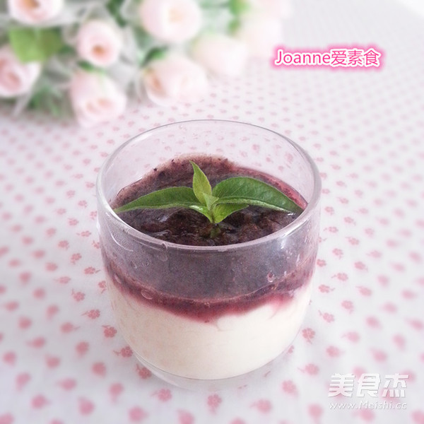 5.蓝莓+少许枫糖浆+少量水放入搅拌机打成浓稠一点的蓝莓汁,淋在布丁上面