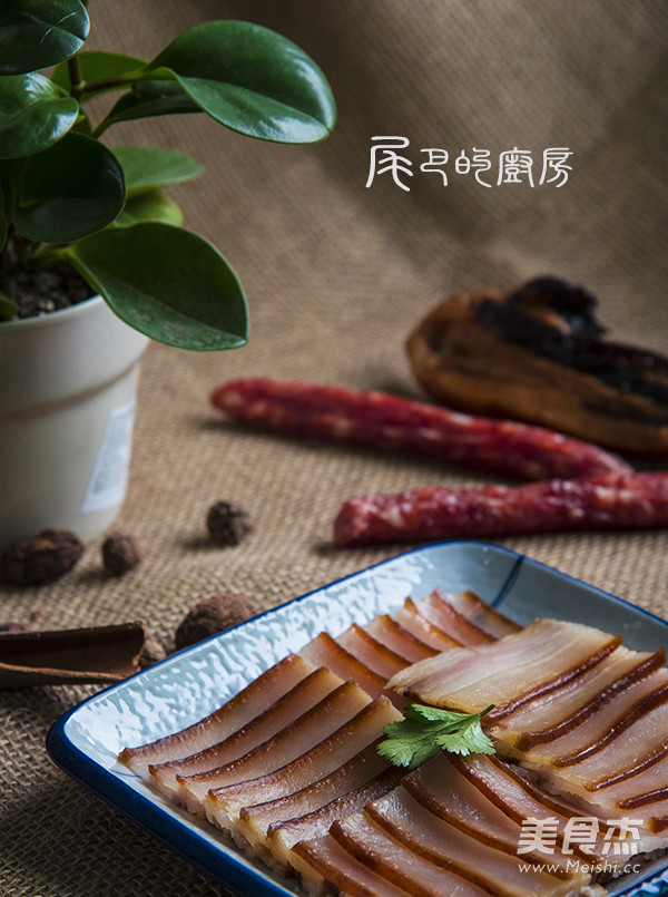 1.精盐12克中加入花椒粒2克炒成椒盐 五花肉修整成较为规则的形状,用椒盐加上白酒腌制6-7天,中途翻面一次 腌制好的五花肉取出晾干表面水分