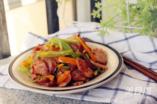 自己加工了两种口味的脆皮肠,放在冰箱里,除了煎烤之外,配上素菜做成下饭菜也是不错的选择。家里有几个辣椒,广式脆皮肠搭配辣椒,又会是什么味道呢?