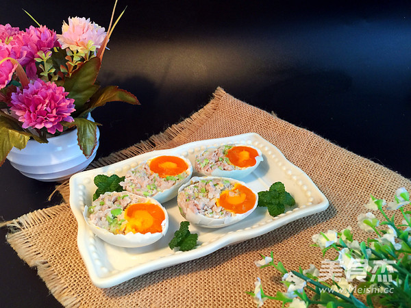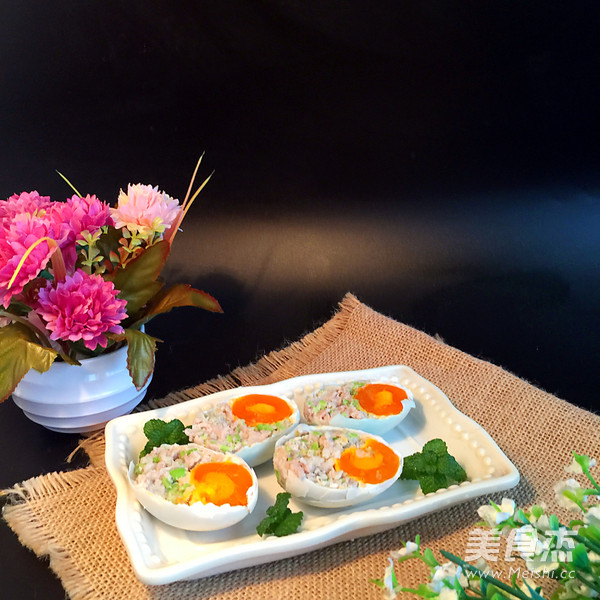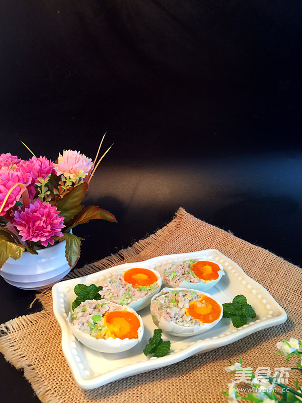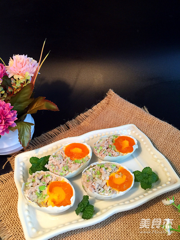 说实话,这个菜名是我自己取的,实在想不出该叫什么?与最近很流行的一道往鸡蛋里塞糯米的糯米蛋有点类似,我是往咸鸭蛋里塞猪肉糜,其实最初的初衷是因为我每次吃咸鸭蛋就是喜欢吃里面的咸蛋黄,所以就想出了这个吃法!就是有点烦恼,剩下的咸蛋白液怎么不浪费,消耗掉!