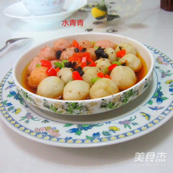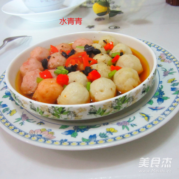 豉汁鸳鸯丸子,也就是用豆豉汁蒸丸子,试做的。 主料 鱼丸150克 肉丸150克 辅料 豆豉5克 香油5克 生抽5克 豉汁鸳鸯丸子的做法 1.备肉丸和鱼丸,豆豉 2.摆盘 3.豆豉用水化开,淋上生抽合成汁 4.倒进丸子碗里 5.撒点调味鲜 6.浇上香油 7.撒上胡椒粉 8.隔水蒸 9.将丸子蒸软即成 烹饪技巧 喜欢吃辣的放点辣椒酱