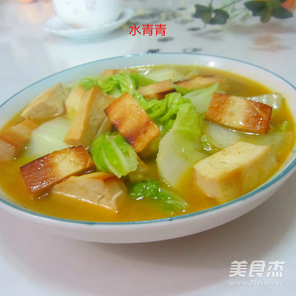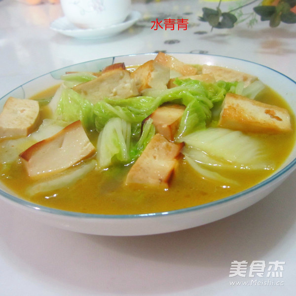 香干咖喱白菜,煮白菜时放了点香干,用咖喱提香,味道还不错哦。 主料 香干150克 白菜250克 辅料 盐2克 咖喱5克 油10克 鸡精2克 香干咖喱白菜的做法 1.用料 2.白菜切块,香干切丁 3.炒香干 4.放盐 5.炒入味 6.放清水烧开 7.放进白菜 8.放进咖喱 9.煮熟 10.撒上鸡精 11.装盘 烹饪技巧 香干先炒香