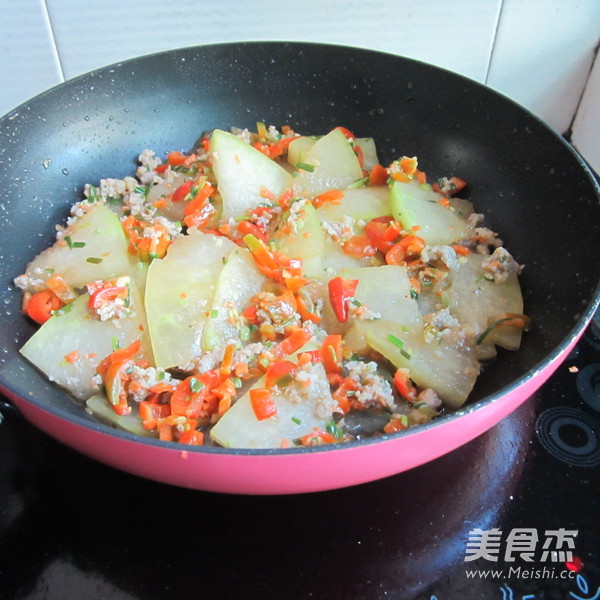 最喜欢吃煎冬瓜了,煎冬瓜时放点肉末,味更鲜。 主料 冬瓜500克 瘦肉150克 辣椒2个 辅料 盐2克 油15克 调味鲜2克 酱油2克 肉末煎冬瓜的做法 1.备冬瓜 2.冬瓜去皮切片,切点辣椒,肉泥少许,我这是包饱饺子剩下的肉泥 3.炒辣椒 4.炒香 5.放进肉泥 6.炒香待用 7.另起锅另放油,下入冬瓜片 8.放盐 9.煎熟 10.淋上生抽或酱油 11.炒 匀 12.倒进炒好的肉泥匀,撒上调味鲜 13.即可 烹饪技巧 煎冬瓜油多才好吃