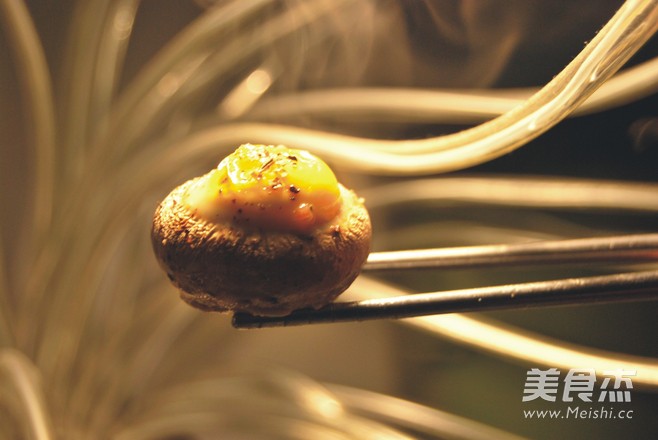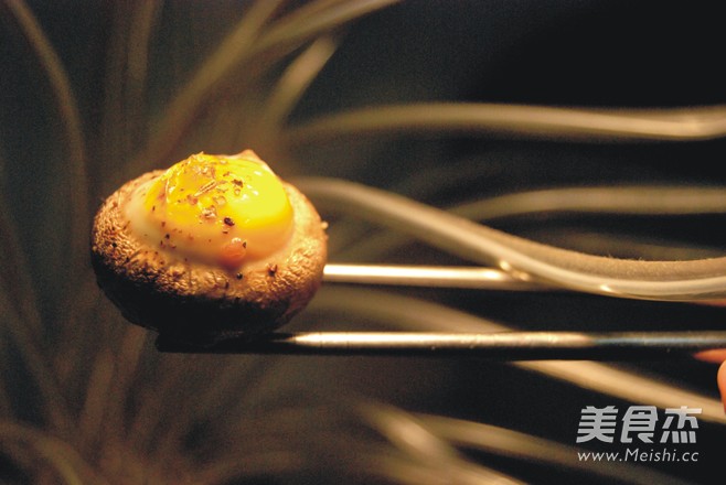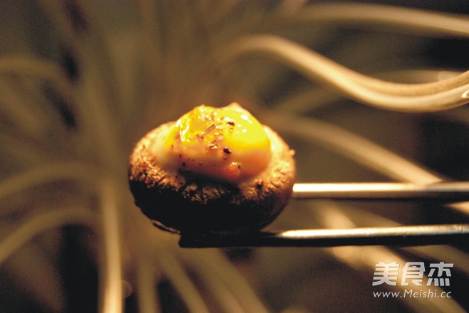 8.随着一声叮声,美味的鹌鹑蛋烤磨菇就做好了~