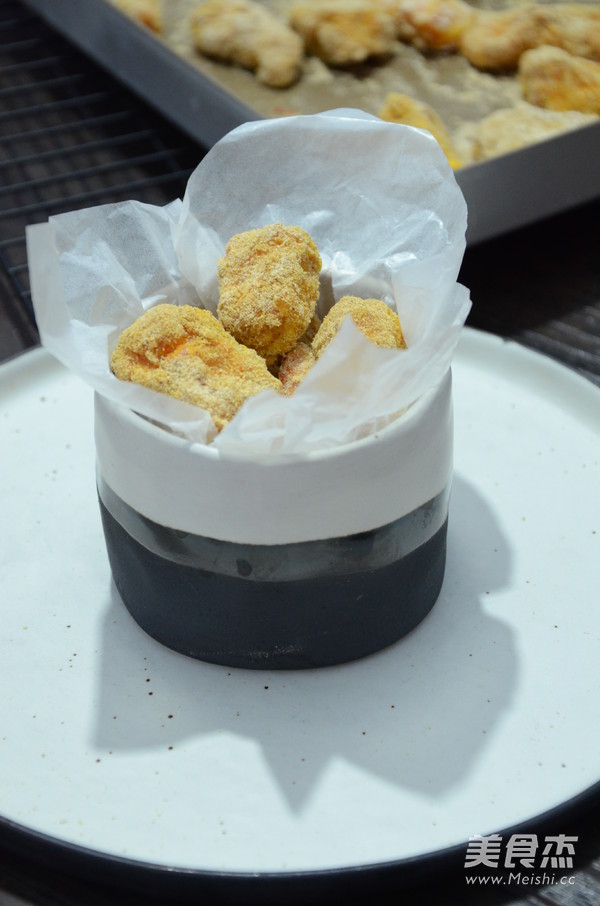 胡椒粉1勺 盐1勺 蛋清1个 淀粉1勺 蛋黄2个 香酥炸粉20克 面包糠适量 奥尔良烤肉粉40克