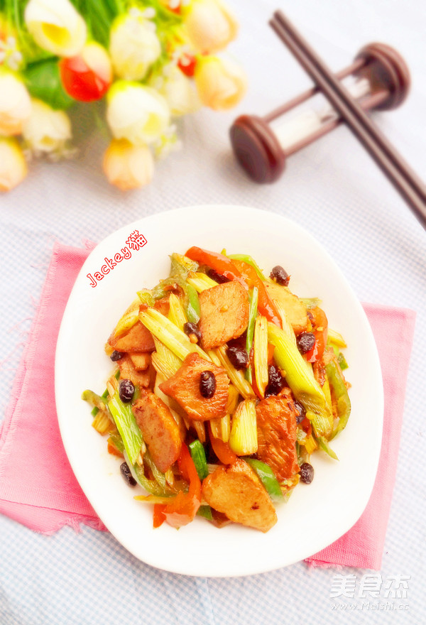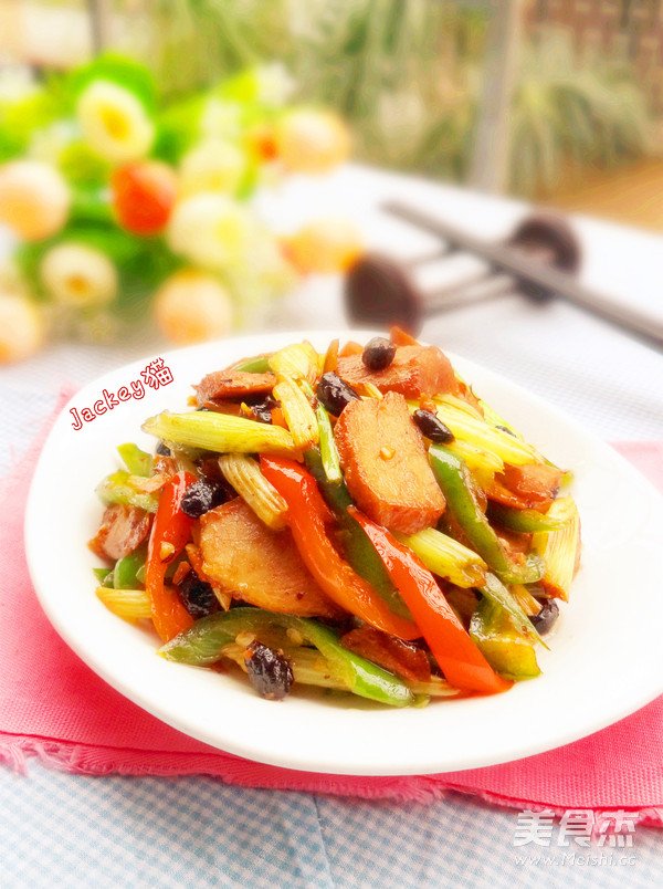 昨天猫给自己煲了个菜干瘦肉汤,汤倒是喝的一干二净,可里面的瘦肉是一口没动,今天下班,猫继续一个人的晚餐,把瘦肉取出来,加些辣椒,青蒜,香芹,再来上一小把豆豉爆香了,炒在一起,豉香浓郁,带着点香辣口,超好吃的,老下饭了,一盘猫一个人就搞定,用四川人爱说的一句话就是:安逸啊