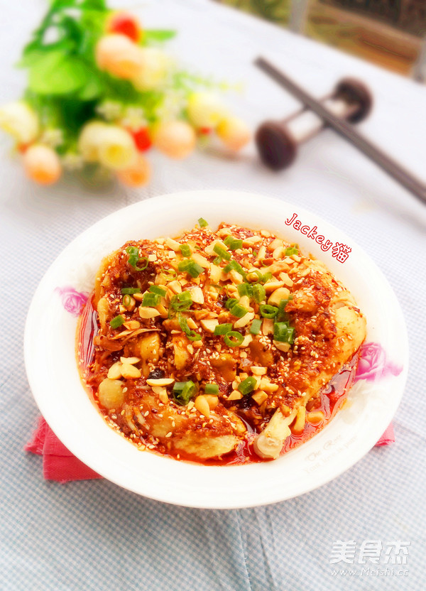 油1汤匙 盐1茶匙 糖1茶匙 味极鲜2茶匙 香醋1汤匙 油炸花生米适量 大蒜15克 辣椒油2汤匙 小葱15克
