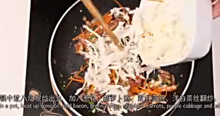 蔬菜培根面的材料:培根10克,黄瓜30克,包菜30克,紫甘蓝5克,豆芽5克,面条50g,生抽5ml 盐2克,蚝油2g 蔬菜培根面的做法: 1.准备好煮熟的面条,将黄瓜,培根,豆芽,包菜,紫甘蓝洗净切好备用 2 热锅热油炒香培根 3 放入包菜和紫甘蓝翻炒 4 再放入黄瓜和豆芽,盐翻炒 5 放入熟面条翻炒 6 加入生抽,蚝油拌匀即可