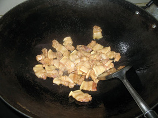 炒好的五花肉盛起待用。