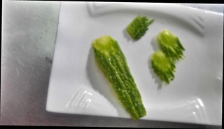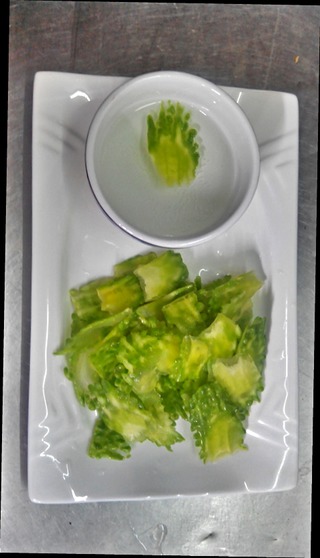 先苦后甜,后味是甜的,特点脆爽 主料苦瓜(两根)雪碧(一瓶)调料无厨具其它 1 这个菜很简单,只要准备雪碧和苦瓜就行了 2 把苦瓜洗干净了切开 3 取出苦瓜子 4 这样片成片, 5 再用雪碧寝泡,5分钟左右 6 在拿个米碗倒上雪碧, 7 最后装盘,把雪碧放在边上,就好了 小窍门: 苦瓜要买直一点的好切,苦瓜去取子时把白的去干净,片尽量薄点。