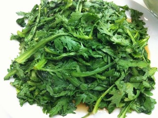 “这种细长茼蒿跟大叶茼蒿不一样,细长茼蒿又名皇帝菜,特别适合做凉拌菜。凉拌茼蒿时,茼蒿梗可别扔掉哦,因为茼蒿梗口感更爽。”主料茼蒿(适量)调料橄榄油(适量)藤椒油(适量)蒜(适量)醋(适量)厨具其它 1 茼蒿叶子用水泡一会儿后择菜叶;梗切段。 2 将蒜茸、盐、橄榄油、花椒油、生抽、醋、芥末,一点凉白开水,拌匀,浇在茼蒿叶和茼蒿梗上。 3 一口茼蒿叶伴着茼蒿梗更美味更爽口。