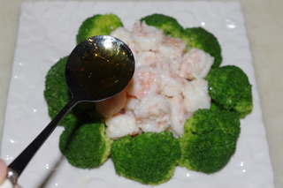 主料鲜虾仁(适量)西兰花(适量)调料蛋清(适量)高汤(适量)盐(适量)料酒(适量)厨具炒锅