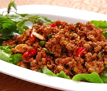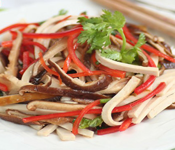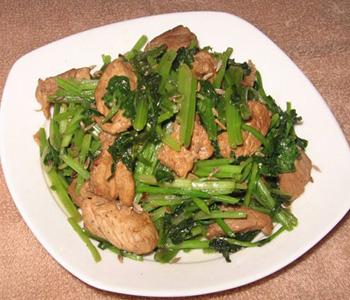 3、香菜根炒牛肉。香菜根洗净,牛肉切丝,油热后依次放入蒜末、葱花、肉丝爆炒,而后放入香菜根,加入盐、味精、香油、红油,装盘食用。