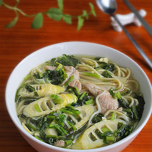主料:雪菜150g、猪腿肉150g、竹笋250g、面条200g
