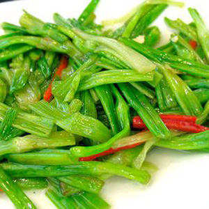 2、水芹菜入锅时间不要长, 稍微炒下就可以,时间长了就丧失了脆嫩的口感。