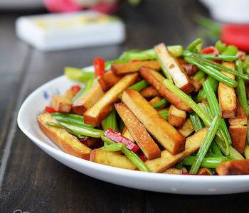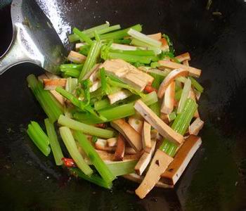 香干能保留豆腐干的富含丰富蛋白质。用水芹菜炒香干时一定要注意不要太用力翻炒,不然香干会碎。再者香干本身有盐味,所以炒的时候要少放些盐。