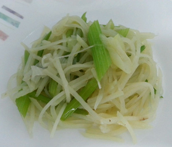 土豆,学名马铃薯。土豆外皮暗黄,内呈淡黄色,淀粉含量高,营养齐全,易被人体消化吸收,在欧洲享有“第二面包”的称号。土豆是低热能、多维生素和微量元素的食物,是理想的减肥食品。所有今天给大家推荐一道关于土豆的菜——土豆丝炒芹菜。做法简单又营养好吃,而且可以减肥、美容等等。