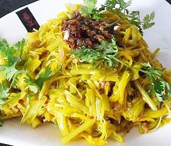 新鲜的黄花菜中含有一种名为秋水仙碱的物质,它会造成胃肠道中毒的症状,所以一定要记住黄花菜不可生食。新鲜黄花菜应该先加工晒干,然后在吃之前先用开水焯一下,再用凉水浸泡至少两个小时。除此之外,在做黄花菜炒鸡蛋的时候一定要加大火力,把它彻底加热,而且每次也不宜过量食用。焯熟的黄花菜适用于凉拌、炒、汆汤或者做配料,不适宜单独炒着吃,应配其他食料。还有,黄花菜应选用冷水发制,效果会比较好。