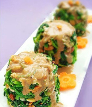 果仁菠菜,里面的果仁可以是花生米或者腰果,一个爽口,一个脆香,一个青绿,一个鲜红。把果仁菠菜往口中送,有种维生素在口中流转,还有种蛋白质在口中散开的感觉。果仁菠菜,口感甚是奇妙。下面小编为大家介绍两款果仁菠菜料理,希望你们会喜欢。