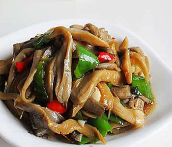 1、平菇洗净控干水分,撕去筋膜撕成条