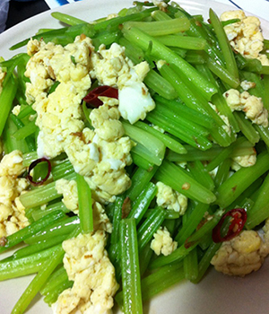 这道芹菜炒鸡蛋清热解毒,利湿消肿,对消化不良、贫血、慢性肝炎有一定的疗效。此外,炒鸡蛋的时候,可在蛋液中加入少许温水搅拌,这样炒出的鸡蛋香嫩蓬松哦。
