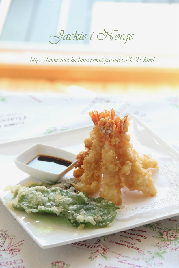 上高中的时候,学校旁有一家小有名气的饭馆叫洋味食屋 ,很喜欢吃那里的天妇罗,虽然那时候还不能想出来天妇罗到底是什么意思。后来才发现,天妇罗原来就是”tempura”的音译,是指根据季节选用不同的食材,挂薄面糊炸制而成的日式料理。天妇罗制作有一个总的三点标准:挂糊要薄,沥油要净,要又脆又香。它区别于普通炸虾的地方还在于它直立不弯曲的造型。