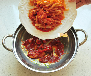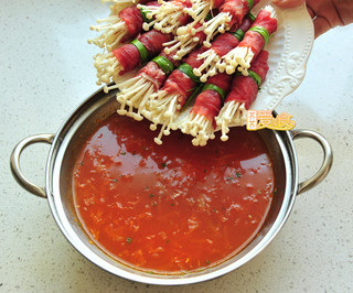 主料: 肥牛卷 (300克) 金针菇 (150克) 韩国泡菜 (150克) 绿尖椒 (2只) 红尖椒 (2只) 高汤或清水 (适量) 橄榄油 (适量) 香葱10克 (适量)调料: 糖 (5克) 蚝油 (1大勺) 蕃茄酱 (2大勺) 韩式辣酱 (1大勺)
