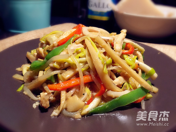 1.所有的肉菜蔬菜切丝备用。