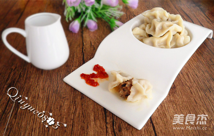 5.饺子皮是事先买好的,把和好的肉馅放入饺子皮,对折捏紧或用包饺子器包好。
