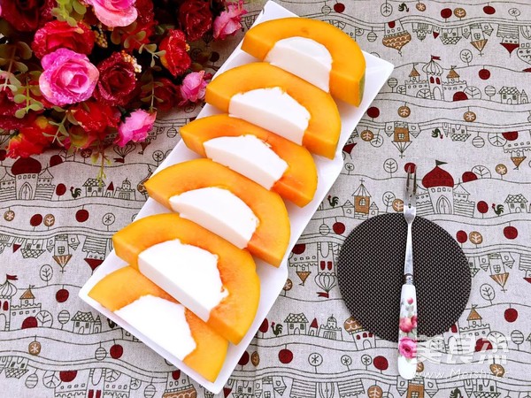 冬日里的午后,来一盘木瓜椰奶冻,心情爽爽的。 主料 木瓜1个 辅料 椰浆120毫升 吉利丁片2片 鲜奶油50毫升 砂糖20克 木瓜椰奶冻的做法 1.准备食材。吉利丁片提前用水泡软。 2.把木瓜以外的食材放到一个盆中。 3.用小火慢慢加热至全部食材融化。放凉备用。 4.木瓜削去顶盖,挖出木瓜籽。 5.木瓜保持平衡,将椰浆溶液倒入木瓜中(家中有小朋友的也可以一起制作的,我家小朋友可是我的小帮手呢)。 6.用牙签把木瓜顶盖与木瓜固定。放入冰箱冷藏凝固。 7.切片装盘即可食用。 烹饪技巧 1.椰浆可以换成牛奶、杏仁露等。 2.全程小火。