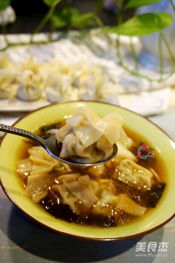 10.做开一锅水,煮好云吞,放少许香菜,虾皮,紫菜,点几滴美极鲜味汁,少许盐,好好吃!