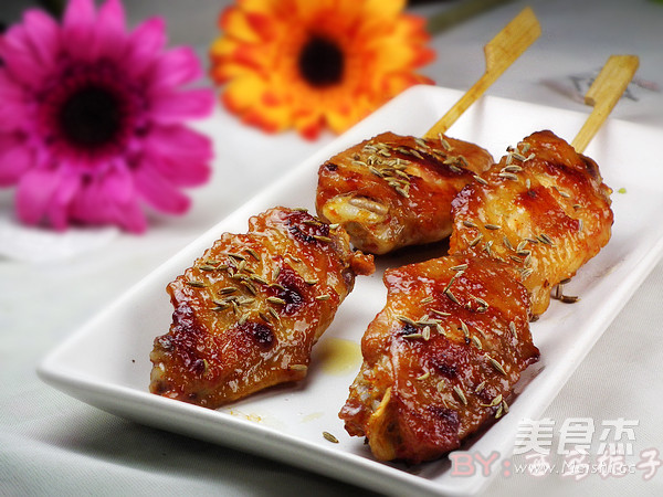 5.把腌好的鸡翅穿成串。(可以不穿哟)