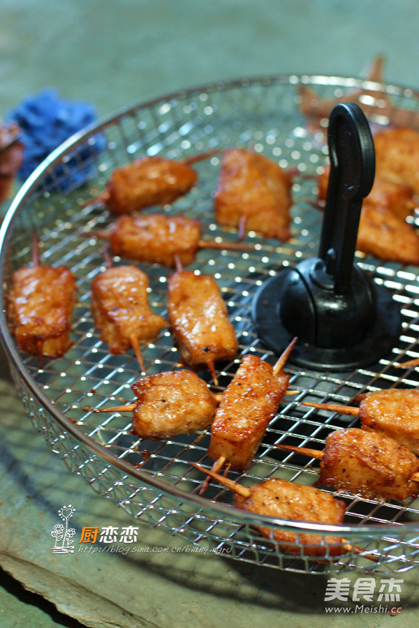 4.时间设置10分钟,点击开关键,启动空炸锅;10分钟后打开空炸锅,喷喷香的牙签肉就做好啦