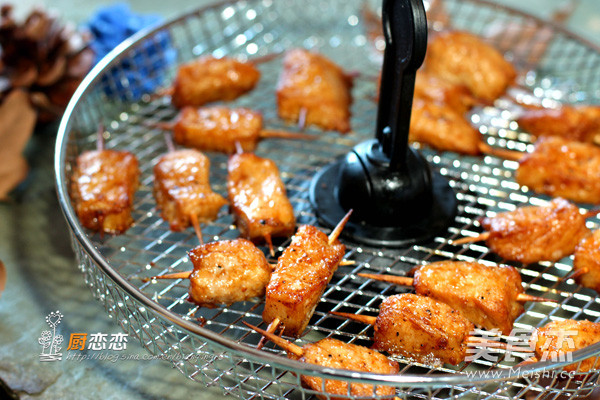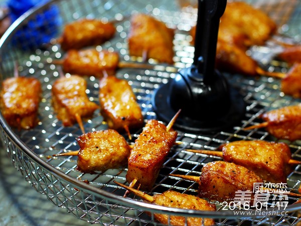 空炸锅最大的优点就是省油,健康烹饪,所以我做这个牙签肉不用另外的放油即可,做出的牙签肉皮酥肉嫩;如果想要里外都很嫩的那种,可以再多加点淀粉,加一勺油,拌匀后再空炸。